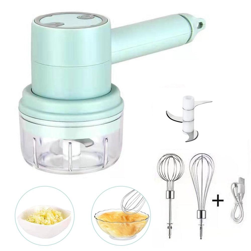 O Mini Batedor 3 em 1 funciona com apenas um clique. Versátil, é mixer, processador e batedor de massas leves, trocando apenas o acessório.
